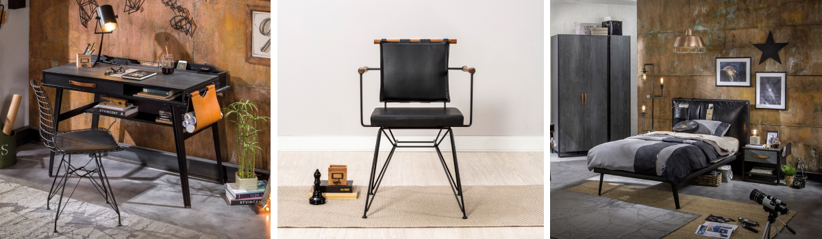 Industriální styl je mezi mladými studenty a teenagery velice populární. Kolekce WOOD METAL vám pomůže zařídit trendy pokoj pro dospívající členy rodiny. Kombinace černé barvy, umělé kůže a dekoru dubového dřeva dělají z tohoto nábytku originální a neokoukané kousky. Kromě neotřelého designu produkty disponují praktickými detaily v podobě úložných prostor a odkládacích ploch, což z nich dělá ideálního parťáka pro studium i práci. Tuto řadu snadno doplníte například výrobky z kolekcí BLACK nebo DARK METAL. Dopřejte svým dětem stylový pokojík, ve kterém se budou cítit sami sebou!