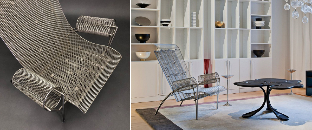 Designové křeslo SUKI je neotřelým a dokonale originálním kouskem, zároveň i poctou kovovým strukturám. Křeslop stojí na trubkovité podnoži, které v horní části obtékají rourovité područky. Několikavrstevnatá zvlněná konstrukce křesla je zhotovena z nerezové oceli, perforovaná skořepina je ze stejného materiálu. Dopřejte si domů nebo do kanceláře či komerčního prostoru nábytek, který jen tak někde jinde nepotkáte! Rozměry křesla: výška: 102 cm, výška sedu: 40 cm, šířka: 96,5 cm, hloubka: 98 cm