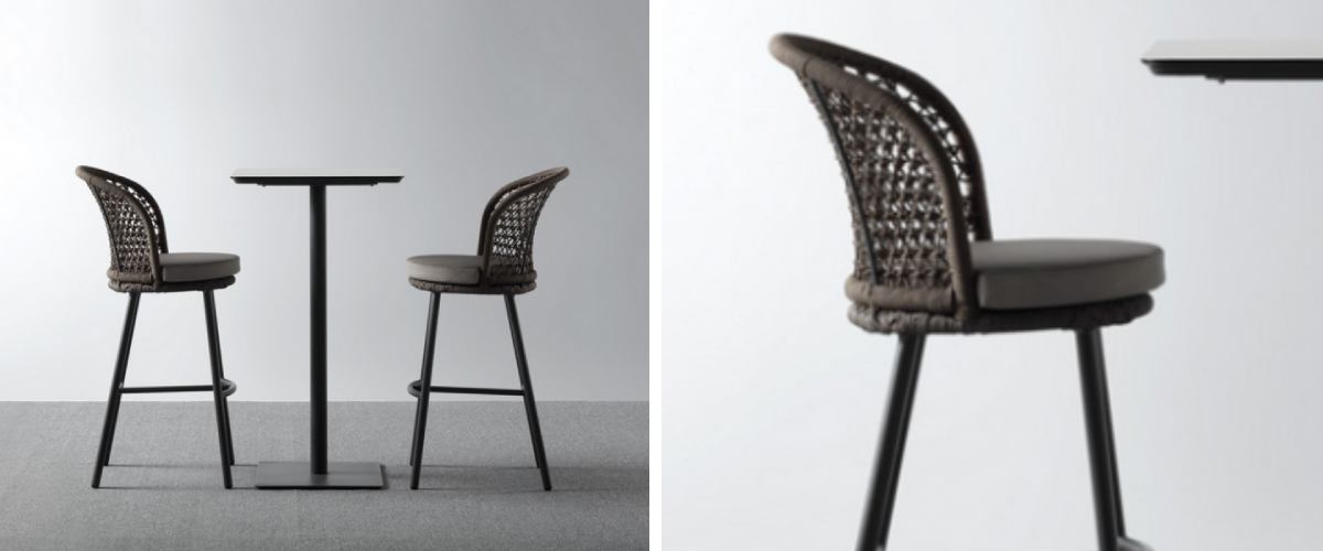 Designová barová židle SHANGRI LA bude dokonalou volbou pro ty z vás, kteří shánějí originální a pohodlnou barovku, která bude použitelná pod širým nebem aniž by se museli obávat o její odolnost vůči rozmarům počasí. Konstrukce barové židle s klasickými tvary je zhotovena z lakovaného hliníku je k dispozici ve 2 variantách provedení. Vyplněna je textilními lany, které drží čalouněné polštáře. Lana i čalounění jsou vždy v odpovídajícím odstínu ke konstrukci dle vašeho výběru. Jak je tomu u barovek zvykem, nechybí samozřejmě ani praktická podpěrka pro nohy. Chytré nápady vypadají skvěle, zvláště když je vezmete ven! Doporučujeme barovou židli doplnit třeba také křeslem ze stejné kolekce SHANGRI LA.