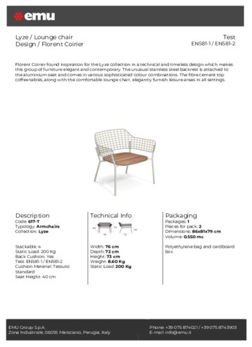 EMU je italská značka, která v rámci původu "Made in Italy" přináší především do exteriérů lehký závan Itálie. Značka se stala průkopníkem v oblasti designu v práci s kovy, se kterými pracuje s myšlenkou cílené udržitelnosti. Značka EMU má ve svém portfoliu nespočet produktů, které jsou se svou elegancí komfortně řešené pro venkovní i vnitřní prostory. Společným prvkem, který se prolíná napříč kolekcemi, je lehkost geometrických linií skloubených v kovovou konstrukci, která dokáže zaručit neoddiskutovatelnou kvalitu, odolnost a lehkou údržbu.