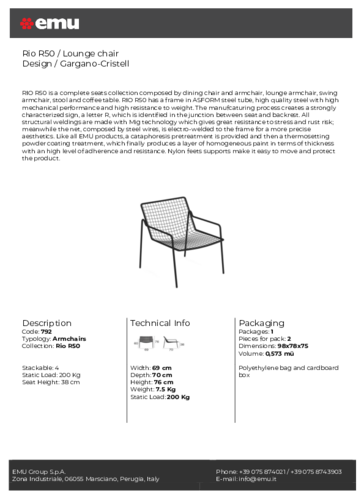 EMU je italská značka, která v rámci původu "Made in Italy" přináší především do exteriérů lehký závan Itálie. Značka se stala průkopníkem v oblasti designu v práci s kovy, se kterými pracuje s myšlenkou cílené udržitelnosti. Značka EMU má ve svém portfoliu nespočet produktů, které jsou se svou elegancí komfortně řešené pro venkovní i vnitřní prostory. Společným prvkem, který se prolíná napříč kolekcemi, je lehkost geometrických linií skloubených v kovovou konstrukci, která dokáže zaručit neoddiskutovatelnou kvalitu, odolnost a lehkou údržbu.