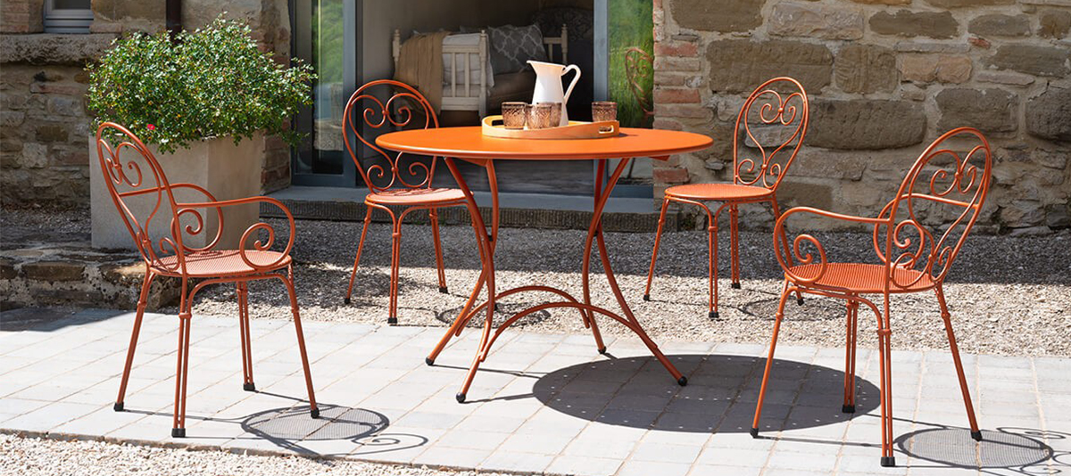 Pohádkově romantická zahrada, terasa ve venkovském stylu nebo šik balkon. Modernizovaná verze venkovního stolu PIGALLE se postará o pohodlné posezení za všech okolností. Je vyroben z lakované oceli v široké paletě barev. Odolává slunečnímu záření i vlhkosti a je dostupný v několika velikostech. Zamilujte se do unikátních linií celé kolekce a připravte se na krásné jarní a letní dny pod širým nebem.