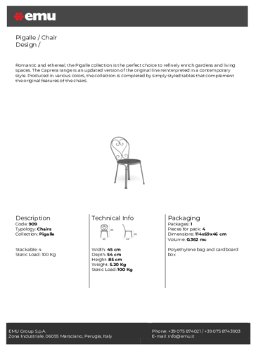 Pohádkově romantická zahrada, terasa ve venkovském stylu nebo šik balkon. Modernizovaná verze venkovní židle PIGALLE se postará o pohodlné posezení za všech okolností. Je vyrobena z lakované oceli v široké paletě barev. Odolává slunečnímu záření i vlhkosti a navíc je stohovatelná až do 4 kusů. Pro ještě větší pohodlí lze doplnit magnetickým nebo klasickým podsedákem. Zamilujte se do unikátních linií celé kolekce a připravte se na krásné jarní a letní dny pod širým nebem.