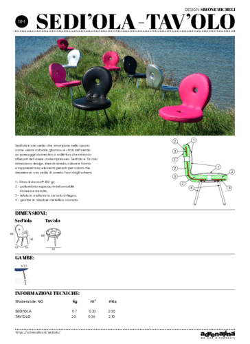 Do you desire an unconventional and original chair? Then the Sedi'ola design chair is the right choice for you! The model has a chrome base, upholstered seat and backrest in the design of your choice and is suitable for both residential and public spaces. You can also choose to upholster it in your own fabric to create a unique bespoke piece. Sedi'ola is a perfect match for Tav'olo tables - together they create an unprecedented interplay of colours and shapes.