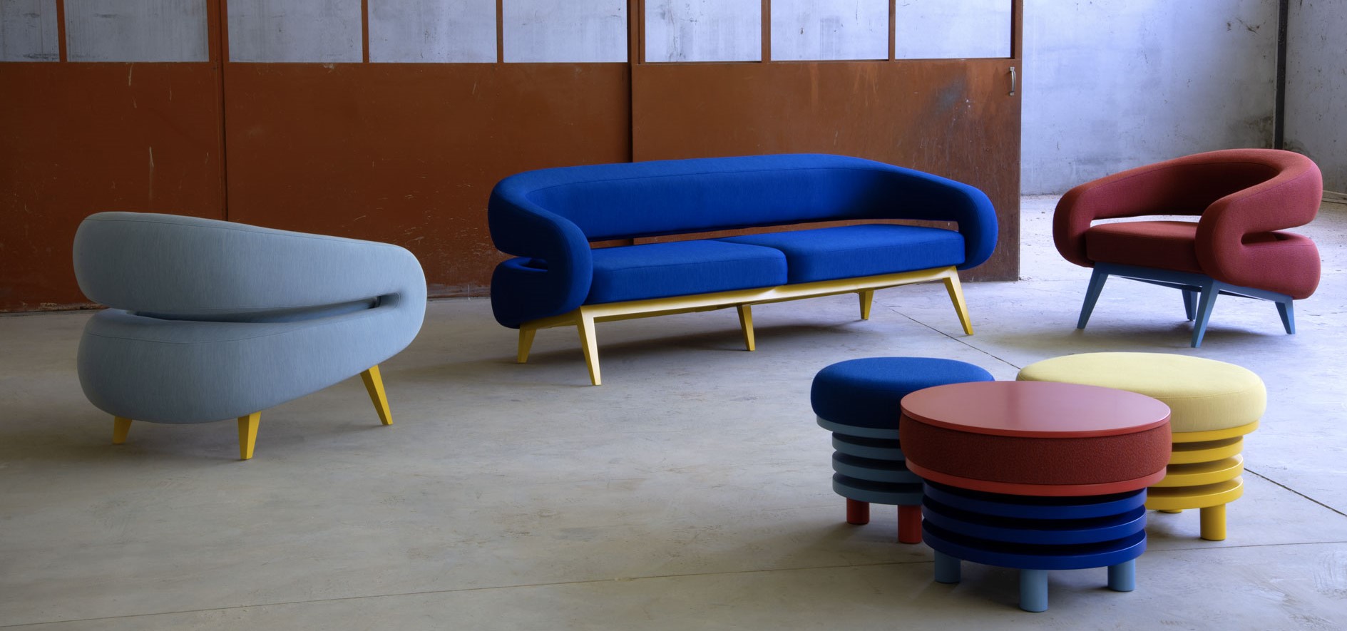 The extravagant Roche collection by Adrenalina, created by the talented designer Daria Zinovatnaya, includes an armchair, a sofa(two and three-seater), a coffee table, a pouffe and a wall lamp.