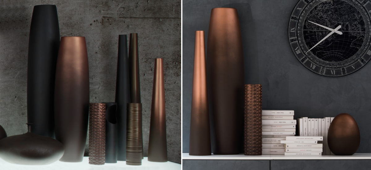 The combination of the Vulcano ceramic vase and delicate flowers brings a touch of romance to any room. But even if you don't have a fresh bouquet, this piece will be a decoration in itself. On the dining table, on a chest of drawers or on a windowsill, it will always look noble and elegant. It is available in plain or fluted versions, several metallic finishes and three heights (77, 95 and 110 cm).