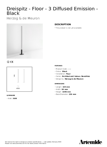 The design duo Herzog & de Meuron design functional solutions with the added value of distinctive design. And with its geometric simplicity, the DREISPITZ floor lamp will refresh exhibition spaces, the office, the café, the shop and private interiors. It is made of partially recycled, recyclable and easily dismantled materials. Even the optimal use of energy contributes to sustainability. You can easily combine individual pieces from the collection to create a unique atmosphere. Control can also be carried out via the Artemide app. So choose original, environmentally friendly and stylish lighting!