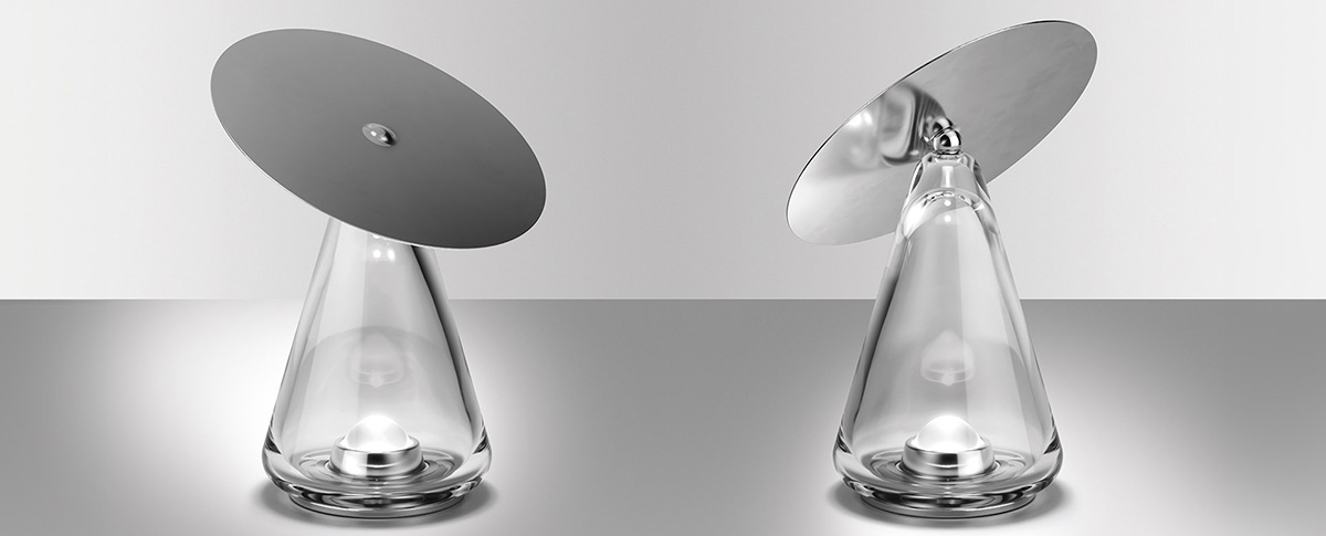 The design duo Herzog & de Meuron literally breathed life into the BOLTONS table lamp . It is a combination of optical study and handmade. The transparent glass body has a variable thickness that emphasises the beauty of the material. On it sits a metal disc, the direction of which can be adjusted using a magnetic ball, thus controlling the direction of the light beam coming out of the lens. An ideal piece for lovers of unique pieces.