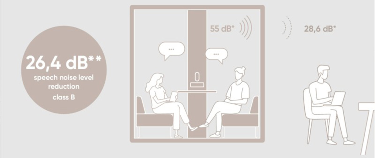 The optimised ventilation system ensures rapid air exchange and a pleasant microclimate throughout use. The ventilation is automatically activated by a motion sensor and continues to operate even after leaving the cabin to ensure the space is perfectly prepared for the next user. This system promotes hygiene, comfort and seamless cubicle sharing in dynamic office environments.