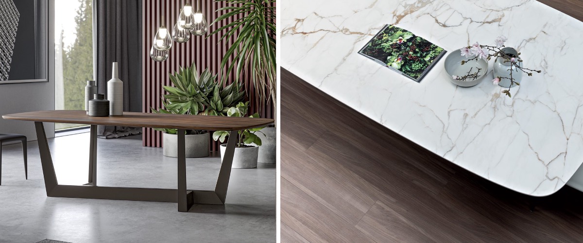 TheART WOOD design dining table was created for Bonaldo by designer Gino Carolo. It is a stylishly refined, perfectly timeless piece that combines a dazzling look, premium materials and quality craftsmanship. A table like ART will last in your interior for generations. It's both beautiful and functional. If you invite your guests to it, they will admire it again and again on every visit! At first glance, the unusual arrangement of the sturdy and stable base catches the eye. You can choose from a variety of table configurations. The base is wooden, the top with modern rounded corners is available in various ceramic or glassfinishes .If you have any questions about possible combinations and the look of the table, please do not hesitate to contact us.