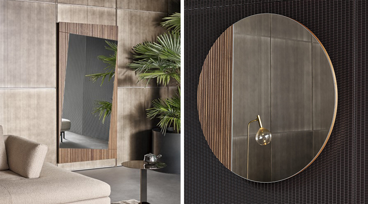 Reflects reality, but at the same time decorates. The MUSA mirror stands out with its walnut veneer ribbing that frames the reflection, giving it a dynamic and 3D aesthetic. The design of the mirror comes from the Spazioameno studio. If you are looking for a novel piece for your hallway, bedroom or stylish business, you have just found the right one. MUSA is also available in a rectangular version.