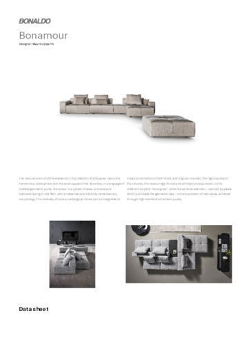 Designer Mauro Lipparini has created the BONAMOUR modular sofa so that its rectangular modules can form linear and angular formations and the resulting seating can be tailored to the space and needs. The 1970s inspiration is evident at first glance from the geometric and voluminous shapes. The seat, back and armrest system is upholstered in luxurious fabrics from a plethora of colours. The low legs are made of metal. The sofa, refined down to the last detail, will dominate the living room and the relaxation area in the office. Treat yourself to comfort, quality and novel design! If you have any questions, do not hesitate to contact us.