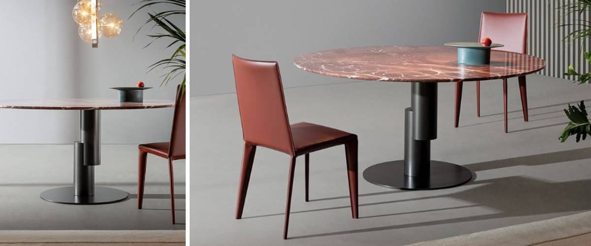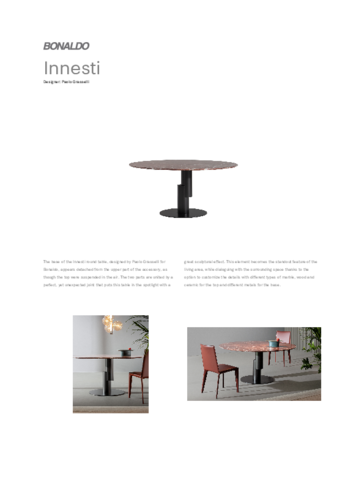 TheINNESTI luxury table in various sizes is designed for all interiors where quality and premium materials are important. This round table stands on an originally shaped central metal base with a stable circular base. You can choose the base in muted shades of matt lacquer according to your interior layout. The round table top is truly exclusive and you can choose marble, wood or ceramic in various shades with a refined surface pattern. The table top is available in 4 sizes for every space. A table that has its place in the home, office and also in a commercial space will be a practical and decorative element for you.