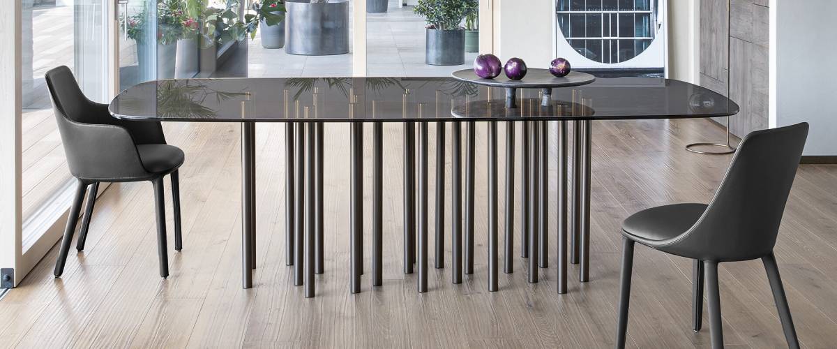 TheMILLE design table in various sizes is a unique piece for those with refined taste. Here, the BONALDO brand puts premium quality and materials on display. The original MILLE table is dominated by a distinctive base made of a multitude of steel tubes. The rectangular table top with rounded corners is made of durable glass and is available in 4 sizes. There is a version with clear glass top and chrome base, but also a version with bronze glass and bronze base or smoked glass with leaded base. Want to be the centre of attention? The MILLE table will turn your interior into a stylish and modern affair and everyone will admire it!