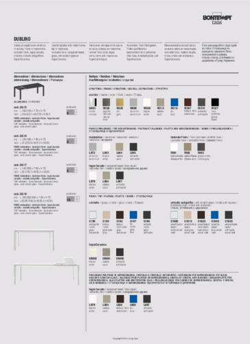 The designer Dublino folding table with one additional tabletop stands out for its simple lines. The metal table base is available in many popular colours of painted metal such as white, dark brown and black. For the table top you can choose from glass and anti-scratch glass, SuperCeramic, melamine or Fenix laminate. For glass, anti-scratch glass and SuperCeramic, the table extension is made of lacquered wood, for the other materials the extension is made of the same material. The Dublino tables are mainly used in dining rooms, however they are also perfect forluxury conference and meeting rooms. The combination with chests of drawers from Bontempi is very popular. These sets complement each other very nicely in terms of material and design.