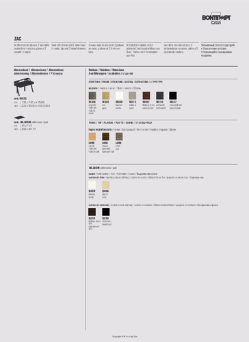 The modern Zac work desk from the world-famous Italian company Bontempi Casa will keep you pleasantly company while you carry out your work duties. The four-legged base is made of lacquered or shiny metal in your choice of colour. The worktop is made of oak veneer available in two shades. The desk has two design sophisticated practical raised storage platforms and two built-in drawers, making it a suitable candidate for any room. It is suitable for private interiors and office spaces.