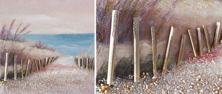 The unusual W705 30 x 30 painting with its distinctive textures and seashore painting will bring peace and tranquillity into your home. Its concept makes it stand out especially in modern interiors. The work is painted by hand on canvas by professional artists, so each piece is original and will satisfy even demanding clients. Thanks to acrylic paints in combination with other materials, the painting has an interesting structure with a plastic effect. Acrylic paints are known for their colour fastness, so the painting will adorn your interior unchanged for many years. The painting can be ordered with different types of frames to match your interior. The painting comes with a certificate confirming that this painting is a true original.