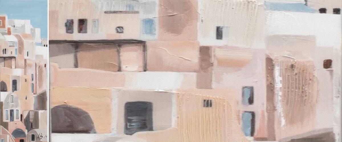 All fans of ancient architecture and holiday destinations will love thestylish painting W913 30x90 cm . Every day you can enjoy it like this on the wall of a classic or modern interior. Bubola e Naibo paintings are hand painted by artists from all over the world. The vertically oriented rectangle-shaped canvas depicts seaside buildings stacked in rows above each other under a bright blue sky. It is rendered in elegantly understated and muted tones that will blend beautifully within the space. Also notable is the subtly sculptural surface texture , which gives the image an added authenticity. Let art into your home or office that inspires and uplifts the soul. The canvas can be ordered unframed or with a frame of your choice from the catalogue.