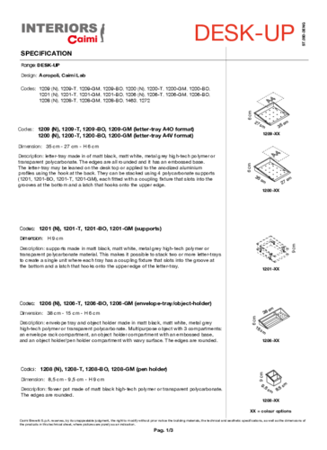 Clearly arranged and in one place, this is what the Desk-up design binder from Italian manufacturer Caimi Brevetti offers. The binder is made of lightweight but durable transparent polycarbonate or coloured polymer - choose from two shades: black or grey. The practical clamping clips can also be ordered in these colours. This type of binder will make it easier to find your way around your documents and files. The model is available in two sizes. We recommend combining it with other Desk-up elements, which will make it easier to organize everything from your desk and get a larger work area.