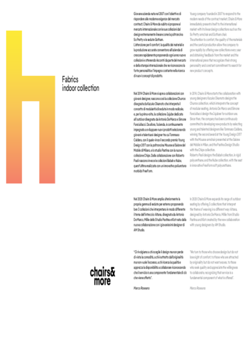 "We are here for those who love design but do not want to give up comfort, for those who are attracted by originality but do not want excess, for those who seek quality, appreciate the willingness to collaborate, and recognize that service is an essential part of what is offered. "