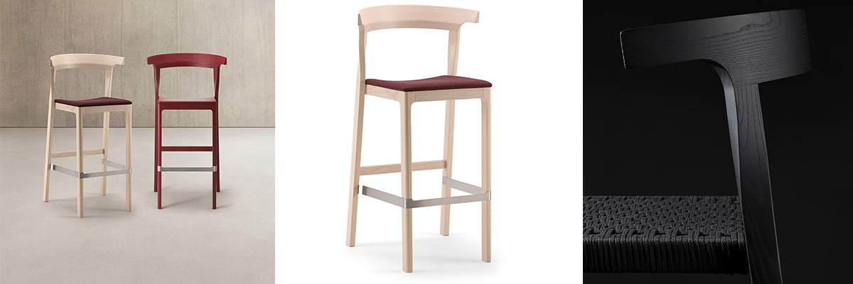 Italian tradition, advanced technology and modern design. When designing the TORSO bar stool, designer Antonio de Marco focused on emphasising the naturalness of the certified ash wood and shaped it into a simple form that features a graceful transition between the base and the solid wood backrest. The seat is upholstered in fabric or leather in a wide range of colours, including the option of supplying your own material. The footrest is in brushed stainless steel. This model is available in several shades of stains or coloured lacquers (with a minimum order of 20 pieces). TORSO is suitable for a private dining room as well as for a restaurant, hotel or other establishment. Explore the entire collection for even more options.