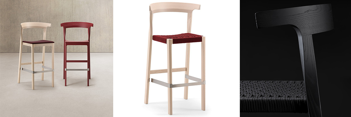Italian tradition, advanced technology and modern design. When designing the TORSO bar stool, designer Antonio de Marco focused as much as possible on emphasising the naturalness of the certified ash wood, shaping it into a simple form that features a graceful transition between the base and the solid wood backrest. The seat is woven with polyester cord, the footrest is made of brushed stainless steel. This model is available in several shades of stains or coloured lacquers (with a minimum order of 20 pieces). TORSO is suitable for a private dining room as well as for a restaurant, hotel or other establishment. Explore the entire collection for even more options.