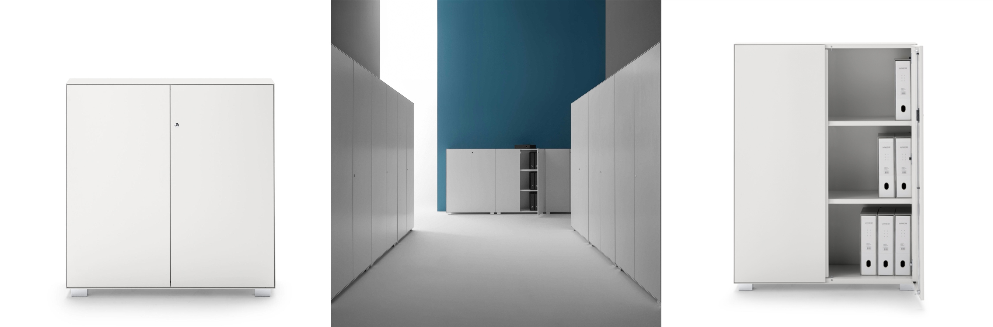 Do you need to furnish your office in a timeless, modern and stylish way? First and foremost you need to start with storage space, the versatile Primo 1000 lockers are the right solution for any type of space. The office cabinet with doors is made of metal. For maximum adaptability, it is available in several height dimensions and three elegant colours (white, black and aluminium). A large selection of accessories (locking system, shelves, hanging systems or sets of feet) can be ordered on request.