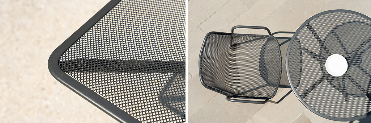 The square COMBO table stands out for its versatility and easily fits in indoors or outdoors. The timeless design of the COMBO collection combines simple lines with practical design, making it perfect for restaurants and cafés. The sturdy structure is made of steel tubes, while the top is made of perforated hot-dip galvanized steel, which ensures high durability and long life even when used outdoors. The table is available in a wide range of colours and several sizes, so it can be easily matched to different types of environments. A practical detail is also the umbrella hole.