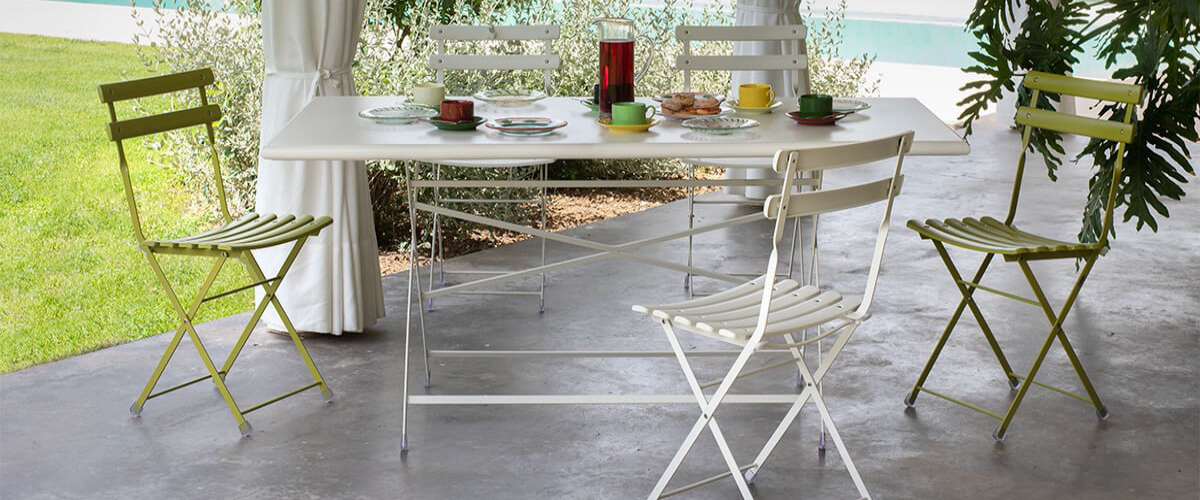 Thestylish ARC EN CIEL folding table is a charming and practical piece for romantic seating in the garden, on the terrace or on your balcony. If you like to indulge in refreshments with friends in the open air, a sturdy folding or serving table is an absolute must for you. The table's sleek, lightweight and, above all, compact design makes it easy to store and move wherever you need it. The table is made of painted steel, so it can withstand even the harshest climatic conditions outdoors. Moreover, you can choose it from a really varied palette of trendy colours. Don't forget to order chairs from the same collection to go with the table. You can also find this table model in other sizes. And the summer will be merrier!