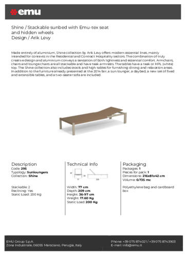TheSHINE lounger impresses with its minimalist, simple design that makes it suitable for any outdoor setting. The sun lounger has a solid aluminium construction that makes it durable and easy to maintain. You will also appreciate its stackability - especially for handling or storage. The SHINE lounger is available in a total of four variants.