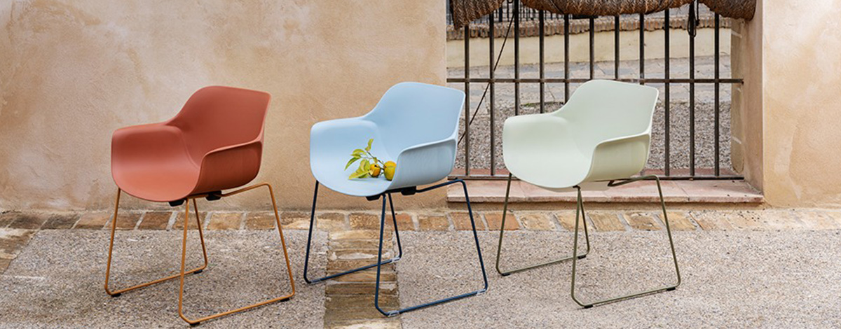 The shapes of the ABRIL chairs come from the mind of designer Patrick Nourget. The pieces, full of distinctive contrasts, are characterised by their lightness and ergonomics. The variety of models is underlined by the different types of bases, shells and the wide range of colours available. The Spanish brand esPattio uses largely recycled and recyclable materials to produce its products, uses renewable energy sources, packs its goods in recyclable packaging and takes other steps to preserve the balance of the environment. If you're looking for furniture that is sustainable, durable, functional and offers modern and variable design, you've just discovered a golden grail.