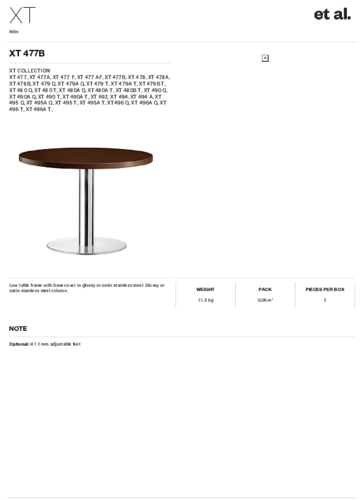 Do you have a very specific idea about the interior or exterior design of your business, company or hotel and somehow you still can't find the right one in the regular offer? Take the path of your own original solution! With the XT central table base in stainless steel, you can enrich your concept with coffee and storage tables that you definitely won't see from your competitors. The base is offered in two tasteful finishes and is suitable for combining with table tops made of laminate, composite laminate for outdoor use and composite laminate for indoor use. The maximum and ideal board sizes are ⌀ 60 cm, 70 cm and 60x60 cm.