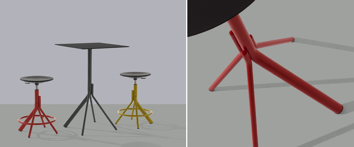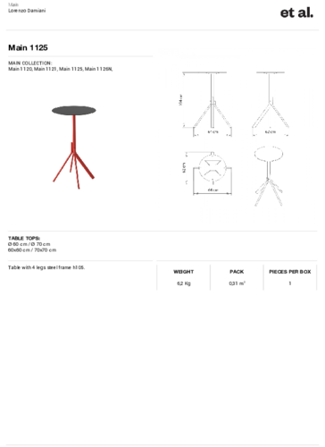 TheMAIN 1125 design table is a stylish and versatile minimalist piece that you can't do without in a modern business or even in your home. It is an indispensable complement to the stools from the same collection. Thanks to its subtle proportions, the table can be instantly moved to wherever you need to serve refreshments. However, it can also serve as a storage area for a vase of flowers. The high base is made of aluminium and painted in the shade you choose from the catalogue. It stands on a stable four-legged cross and, interestingly, the legs of the table are not the same diameter or length in relation to the central leg. The round table top is also made of lacquered metal - again in the colour of your choice. The table and the entire MAIN collection were designed for et al by Milanese architect Lorenzo Damiani.