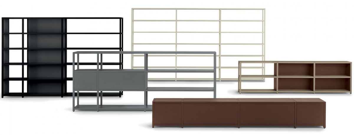 Kitchen systems, bookcases or cabinets and chests of drawers of all shapes and sizes. The Frame collection allows an infinite number of options for spaces of different sizes and purposes. Italian designer Salvatore Indriolo has combined the light industrial design of durable metal with minimalist refinement and cosiness. Dozens of finishes allow this designer furniture to be incorporated into an ultra-modern apartment as well as a grand office space or other commercial facility.