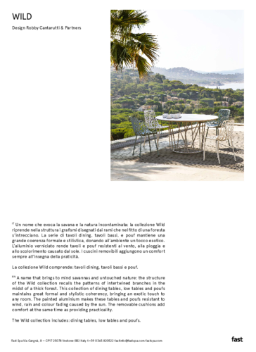 Fine lines and clean design. That's what the WILD collection from design studio Robby Cantarutti & Partners boasts. The range of tables and pouffes is designed primarily for relaxation and social occasions: al fresco brunches, informal dinners with friends or cocktail parties. Thanks to their elegant, timeless design, the pieces will look good in combination with products from other FAST collections.