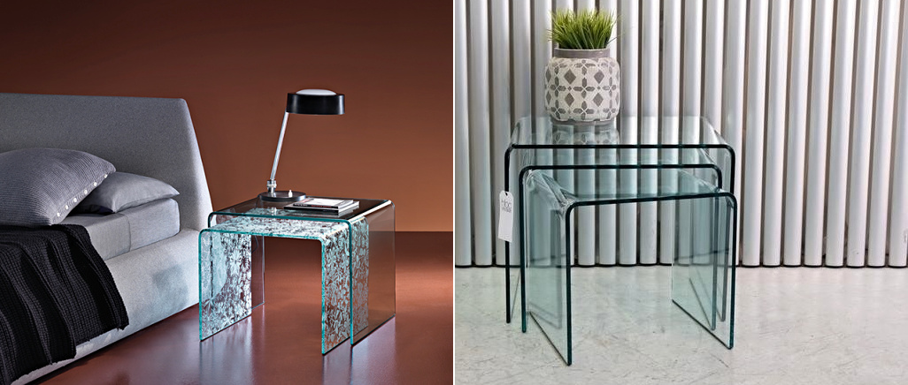 Theelegant RIALTO coffee table arches like the bridge of the same name in Venice, Italy. Whether you use it as a practical piece on which you can place an open cup of coffee or a book, a work table on which to tackle all your work duties, or on which to serve dinner. The RIALTO TRIS conference table in bent glass will impress you with its clean, elegant design. You can place a lamp or a vase of flowers on the table or use it as a design accessory. The piece is available in 3 sizes.