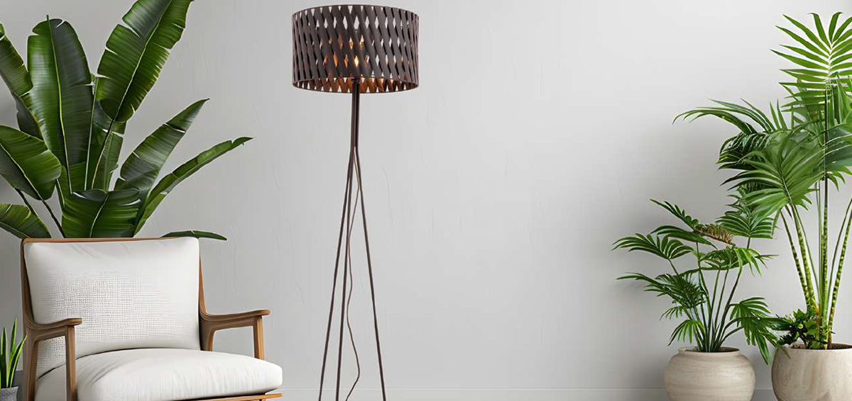 The TROIA floor lamp embodies the idea of sophisticated lighting for the modern living room, bedroom or even study. The three-legged base is made of metal, the knitted shade in three leather colours gives the lamp a casual touch and diffuses the light effectively. So decorate your home or business with a lamp that is also a decoration.