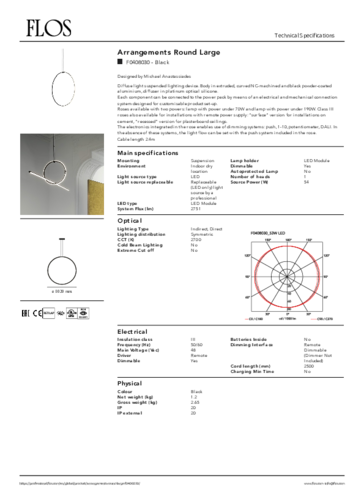 The ARRANGEMENTS pendant lighting from designer Michael Anastassiades provides diffused light and stands out with its simple yet interesting shapes. The extruded curved aluminium body is painted with black powder coating. The diffuser is made of platinum optical silicone. Each component can be connected to the power supply unit using an electrical and mechanical connection system. The ceiling rose, which is available with two wattages (up to 70 W or up to 190 W), integrates a DALI dimmer to adjust the light intensity. Pieces from the entire ARRANGEMENTS collection can be freely combined with each other to create unique patterns and lighting systems in both domestic and commercial environments. The ROUND model is available in several sizes. If you have any questions, please do not hesitate to contact us.