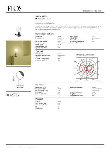 The LAMPADINA table lamp by the designer Achille Castiglioni will become a practical and design accessory. The clear spherical part is partially sandblasted to provide diffused light. The anodised aluminium base is used to store the excess power cord, which is 2.3 m long. The Bakelite lamp holder is available in several paint colours. Fine-tune your interior to perfection with lamps! If you have any questions, please do not hesitate to contact us.