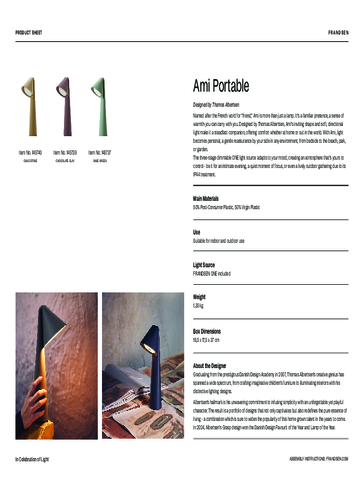 The name AMI is based on the French word for friend. Made of 50% post-consumer plastic in several colors, this table lamp brings adjustable light for different occasions. Being portable, you can carry it to your bedside table, dresser or study. Light intensity can be controlled from mood to vivid illumination. AMI uses the revolutionary ONE light source, which offers three-stage dimming and 12-hour operating capacity at maximum light output. It is available in three colour options and can be accompanied by a magnetic power supply rechargeable via USB cable. If you're looking for sympathetic and functional lighting for a variety of occasions, AMI hits the spot.