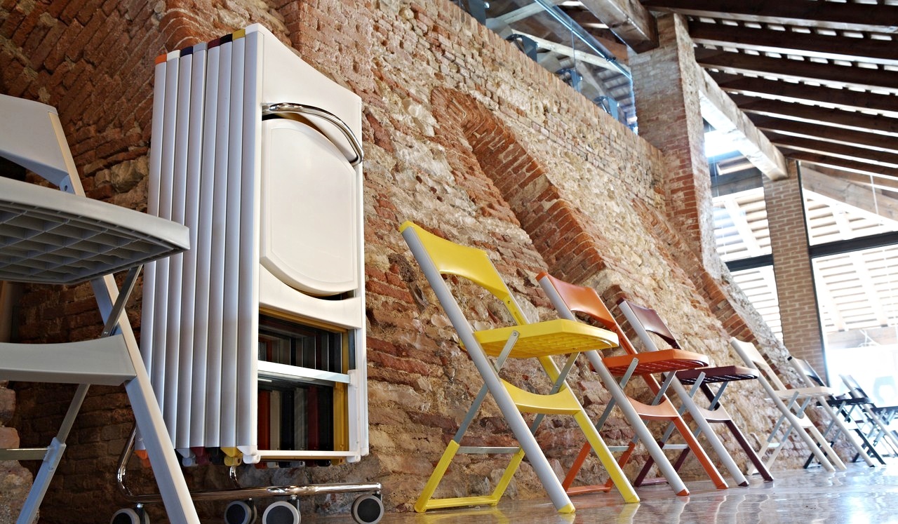 Are you planning to get COMPACT folding chairs but worried that they won't be easy to handle? Then get the COMPACT trolley to go with them for efficient storage and moving. Up to 7 COMPACT chairs can fit on the metal piece. Need to move a larger number of chairs? Then we recommend the trolley for 14 chairs.