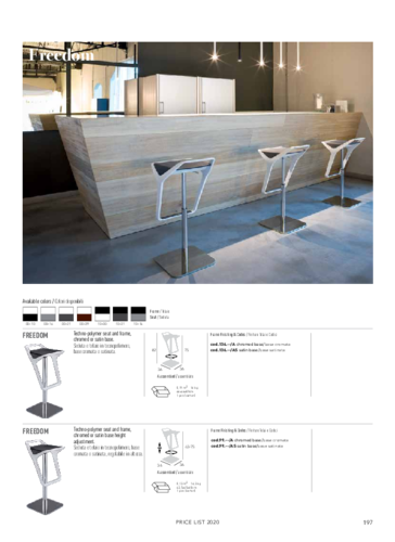 Are you equipping a new bar or restaurant or just want to get a nice piece for your dining room? Then the FREEDOM bar stool is perfect for you. The technopolymer seat, which is available in several colours, stands on a swivel height-adjustable base made of chrome-plated steel or stainless steel. The footrest takes care of your comfort.