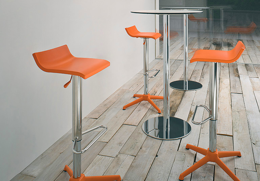 Less is sometimes more and this is exactly the case with the timeless OVER T bar stool, which you will immediately fall in love with. The designers at Eurolinea have opted for a minimalist style that fits perfectly into modern homes and commercial spaces. The technopolymer seat rests on a swivel height-adjustable base in chrome-plated steel with a seat-coloured base.