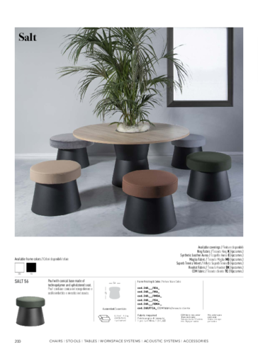 TheSALT design bench is always ready to provide a temporary seating area, even for several people at once. A bench such as this was created, for example, for modern office lounges. In addition to seating, it is also suitable as a storage area, for example. The SALT bench is supported by two sturdy base panels resembling bollards with a coloured cap. The base is made of a durable and easy to maintain technopolymer in your choice of shade. The seat upholstery is available in a plethora of fabric options including leatherette or your own supplied fabric. Take advantage of the opportunity to get a one-of-a-kind customized piece! The bench can also be complemented with compact poufs from the same collection, for example.