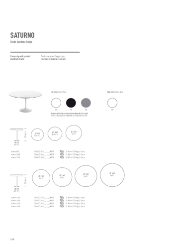 | Table top size / diameter | Ø800, Ø1000, Ø1200, Ø1300, Ø1400, Ø1500, Ø1600 |