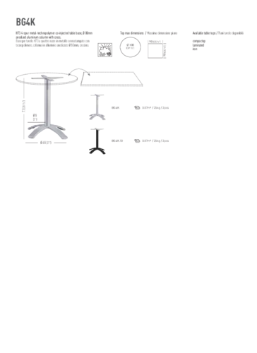 Looking for a new table for your bar, restaurant or dining room? Don't underestimate the choice of the base, which must be robust, stable and made of quality materials. The 730 mm high BG4K table base with four legs does all this. The base can be ordered in aluminium or black lacquer and does not include a table top. This must be ordered and its ideal dimensions are 90 cm diameter or 100 x 100 cm. Not sure which option to choose? Contact us and we will help you choose the right piece.