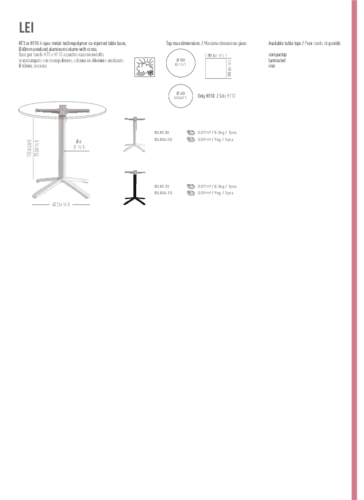 Looking for a new table for your bar, restaurant or dining room? Don't underestimate the choice of a table base, which must be sturdy, stable and made of quality materials. The 730 mm high LEI table base with four legs does all this. The base can be ordered in black or white (co-injected technopolymer) and does not include a table top. This has to be ordered (see technical data sheet for dimensions). Not sure which option to choose? Contact us and we will help you choose the right piece.