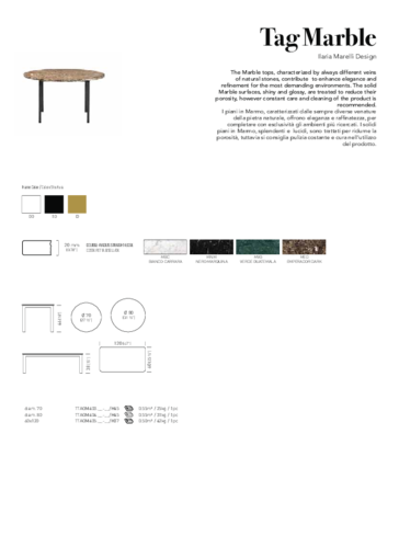 TheTAG coffee table will catch your eye at first sight with its unusual appearance. As it is a natural marble product, each piece is original with a different veining pattern. Natural marble is a very elegant and durable stone that is suitable for even the most demanding environments. The exterior of the stone is treated and polished to reduce its porosity, but it is still recommended to care for and clean the product regularly. The classic white marble is suitable for minimalist interiors and other more extravagant colours will create a memorable atmosphere in any room. But if you don't want to care for natural stone, choose the porcelain version of the tabletop. The table's construction is metal and you can choose between gold, black and white lacquering.