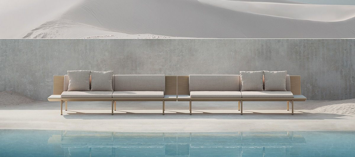 Inspired by the organic shapes of nature, the curves of sand dunes and the feeling of movement, Japanese designer Nao Tamura designed the DUNNE sofa. The key element is the extruded powder-coated aluminium parts, which are hand-welded to evoke the soft curves of coastal nature. This design is available in several attractive colours including a gold finish. The cushions fit the curves and offer both comfortable seating and weather resistance. The upholstery is available in a choice of colours. The removable cover is also an advantage and can be easily cleaned. This model also includes concrete side tables in three shades. With the unique DUNNE collection, you can create a Mediterranean-style outdoor living area tailored to your patio and needs.