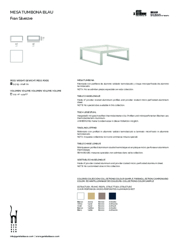 No interior can be complete without a proper table - it is a practical accessory on which you can place an open cup of coffee, a book or serve dinner. The MESA TUMBONA BLAU design table is the epitome of minimalism, timelessness and uniqueness. Its design makes it durable, easily sustainable and suitable for outdoor spaces. The frame of the table is made of painted aluminium in several colours and the top is made of aluminium mesh.